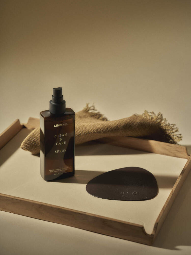 Klíčem k udržení kožených výrobků v perfektním stavu je správná péče. Pokud i vy chcete, aby vám vaše oblíbená kožená prostírání a podtácky pod skleničky vydržely co nejdéle, neměl by ve vaší výbavě chybět univerzální čistící sprej Clean&Care, který byl vyvinut speciálně pro dokonalé čistění a péči o prostírání a stolní podložky od Lind DNA. Použití je jednoduché - stačí jej nastříkat přímo na povrch nebo vlhký hadřík a setřít. Bonusem je i příjemná vůně.