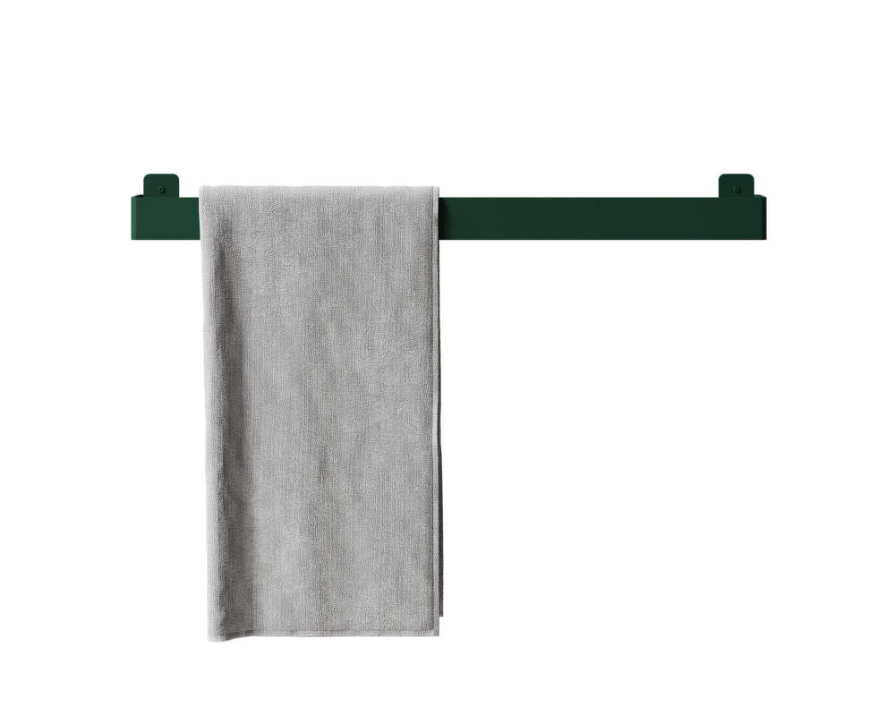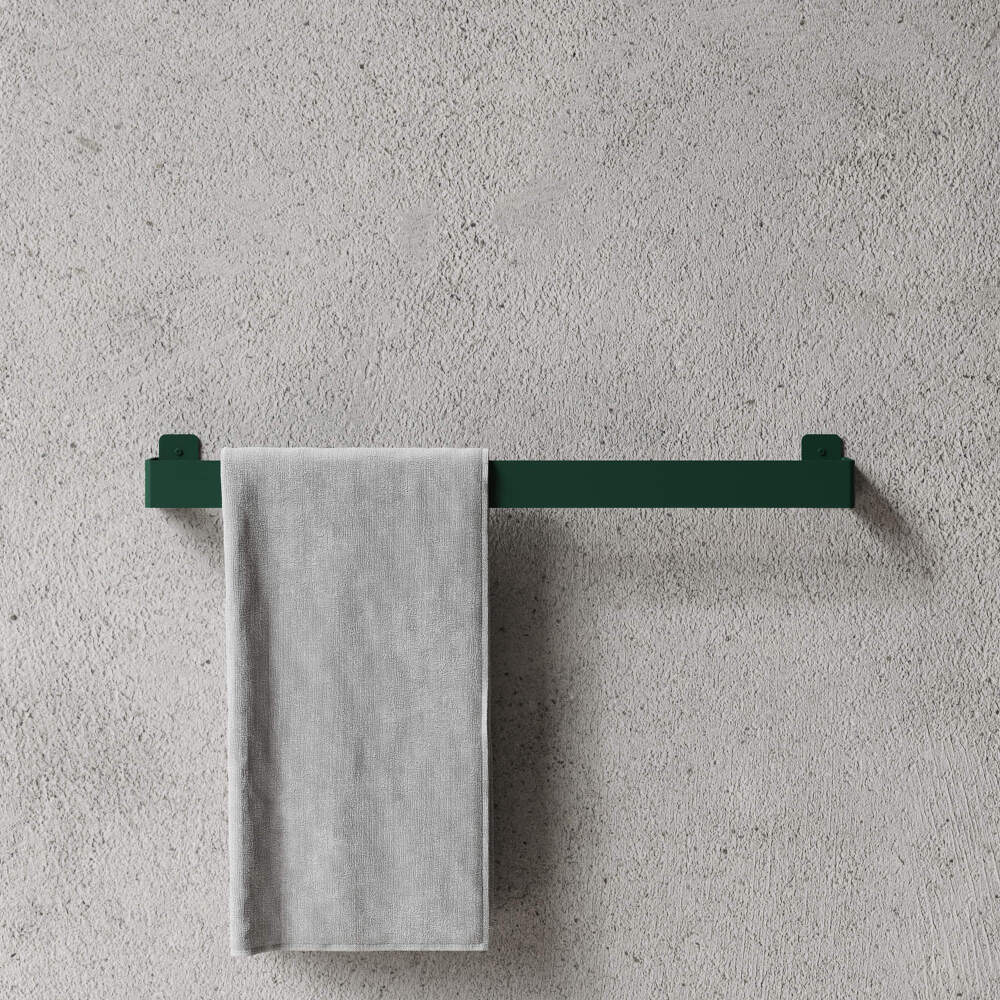 Minimalistický držák na ručníky z kolekce koupelnových doplňků od značky Nichba v zeleném provedení.