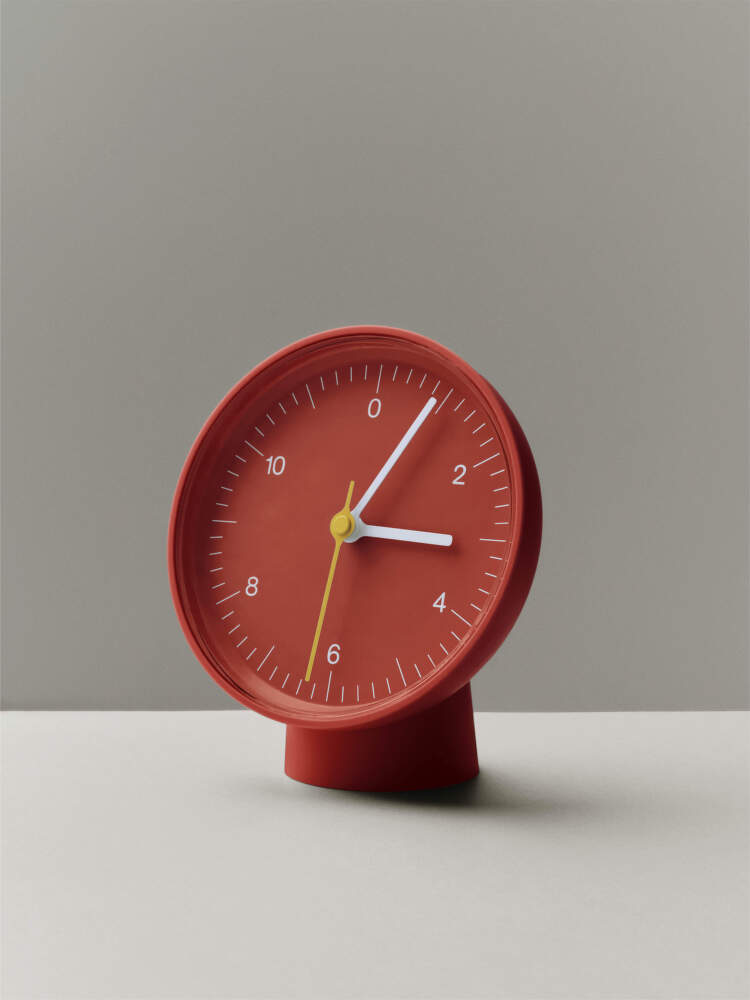 Hodiny Table od dánské značky HAY v minimalistickém designu bez nadbytečných detailů navrhl britský designér Jasper Morrison. Barva: červená.
