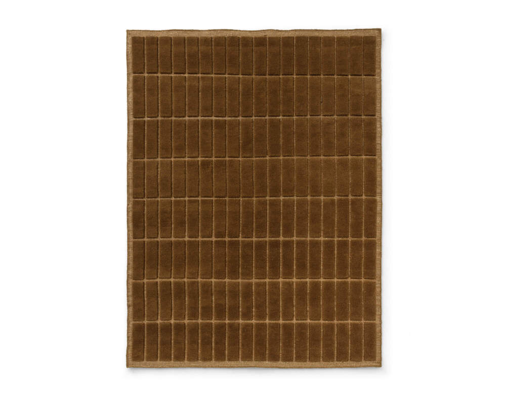 Ručně tkaný koberec Tile o rozměru 170x240 cm, který pro dánskou značku Audo Copenhagen navrhlo studio Kroyer-Saetter-Lassen. Barva: hnědá.