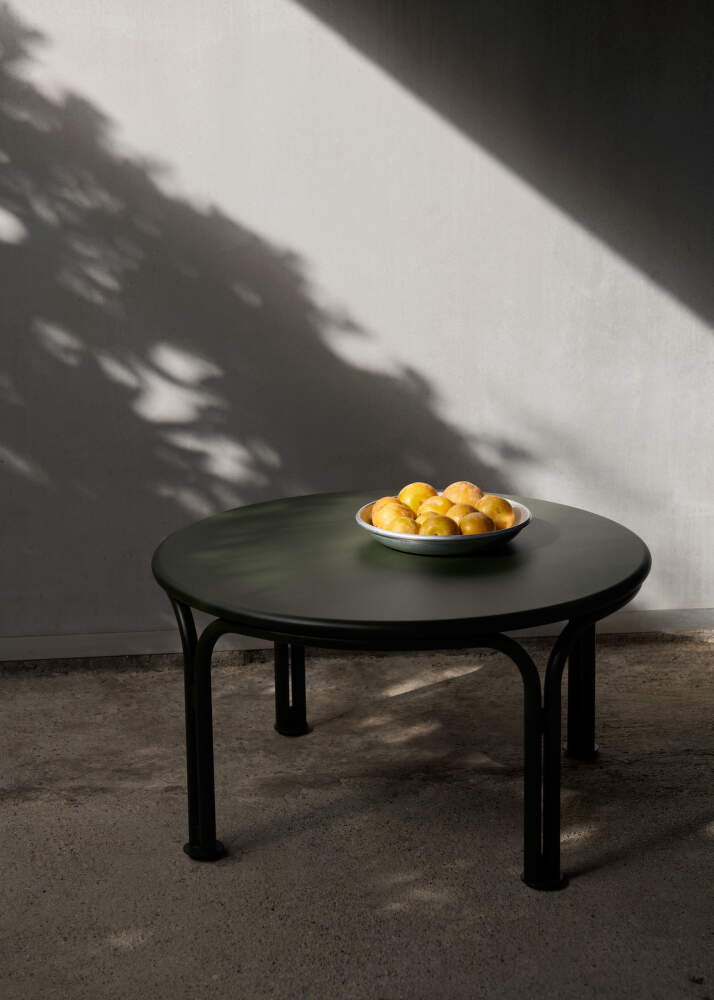 Zahradní konferenční stolek z odolné oceli Thorvald SC108 od dánské značky &Tradition navržený studiem Space Copenhagen. Provedení: průměr 70 cm, zelená.