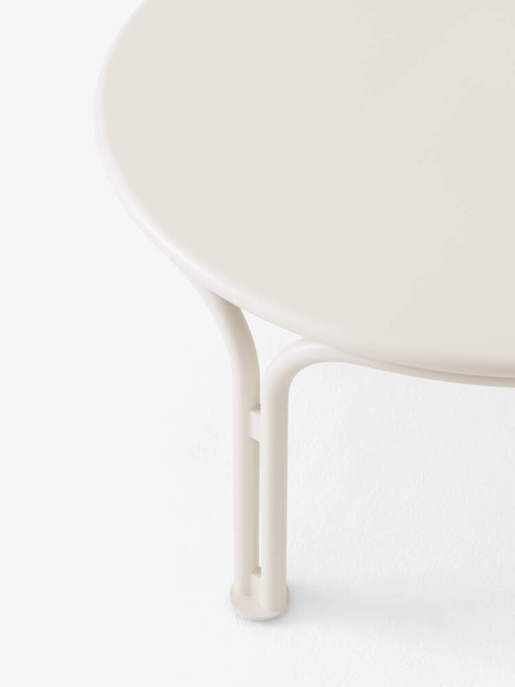 Zahradní konferenční stolek z odolné oceli Thorvald SC108 od dánské značky &Tradition navržený studiem Space Copenhagen. Provedení: průměr 70 cm, krémová.