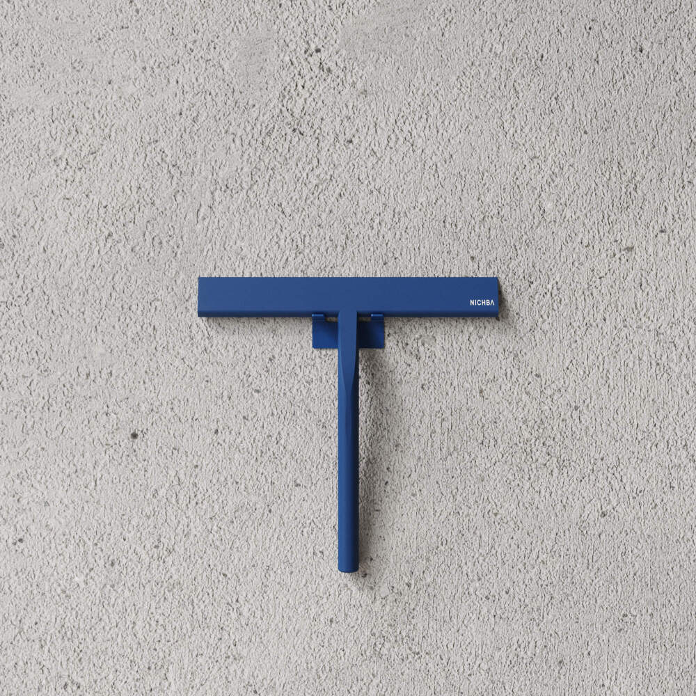 Minimalistická stěrka z kolekce koupelnových doplňků od značky Nichba v modrém provedení.