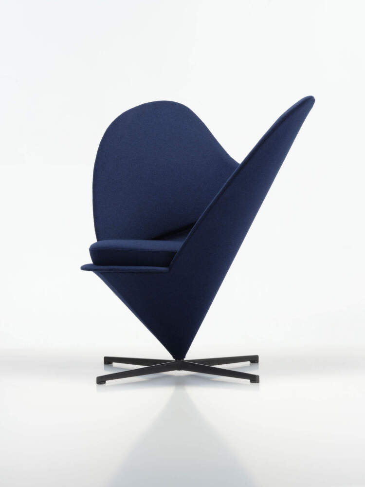 Návrh Vernera Pantona pochází z konce 50. let a přirozeně navazuje na původní koncept kuželového sezení. Heart Cone Chair dnes působí jako osobitý solitér, je to křeslo, které v prostoru rozhodně upoutá pozornost.