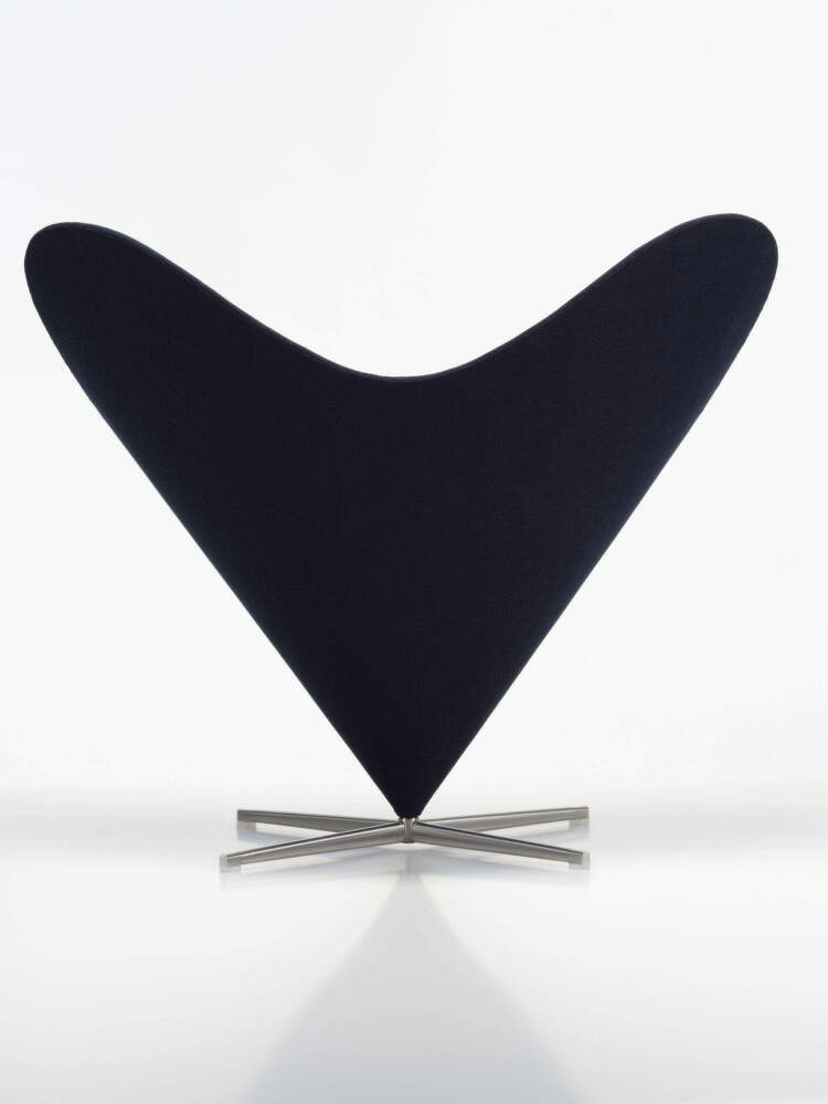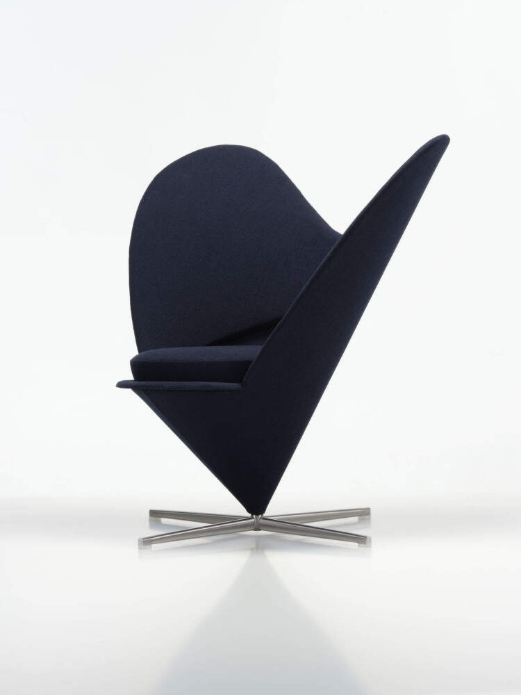 Návrh Vernera Pantona pochází z konce 50. let a přirozeně navazuje na původní koncept kuželového sezení. Heart Cone Chair dnes působí jako osobitý solitér, je to křeslo, které v prostoru rozhodně upoutá pozornost.