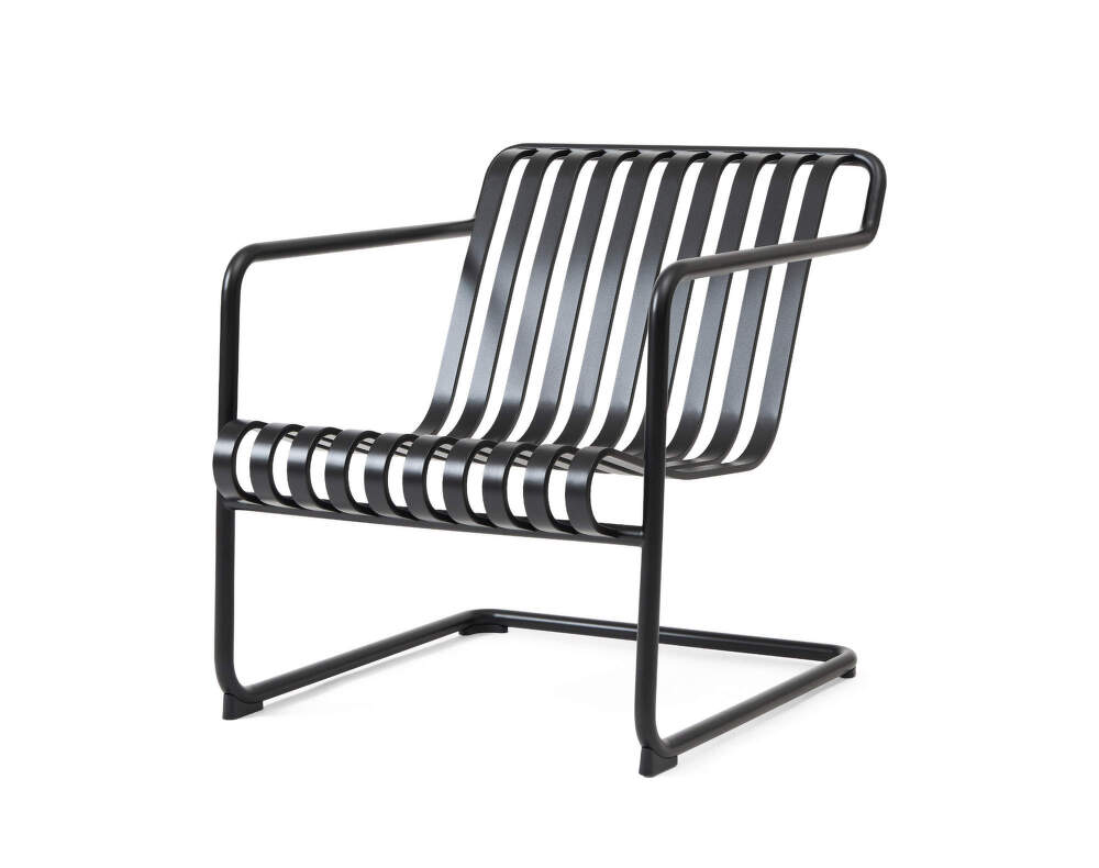 Nižší ocelové křeslo Palissade Cantilever z kolekce moderního venkovního nábytku, které pro dánskou značku HAY navrhl Ronan Bouroullec. Barva: antracitová.
