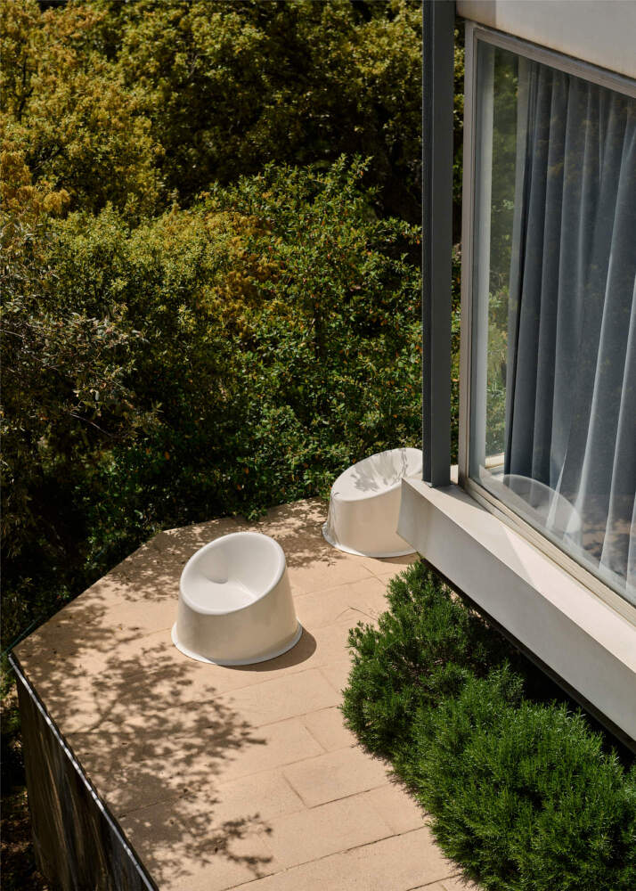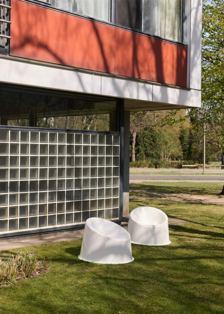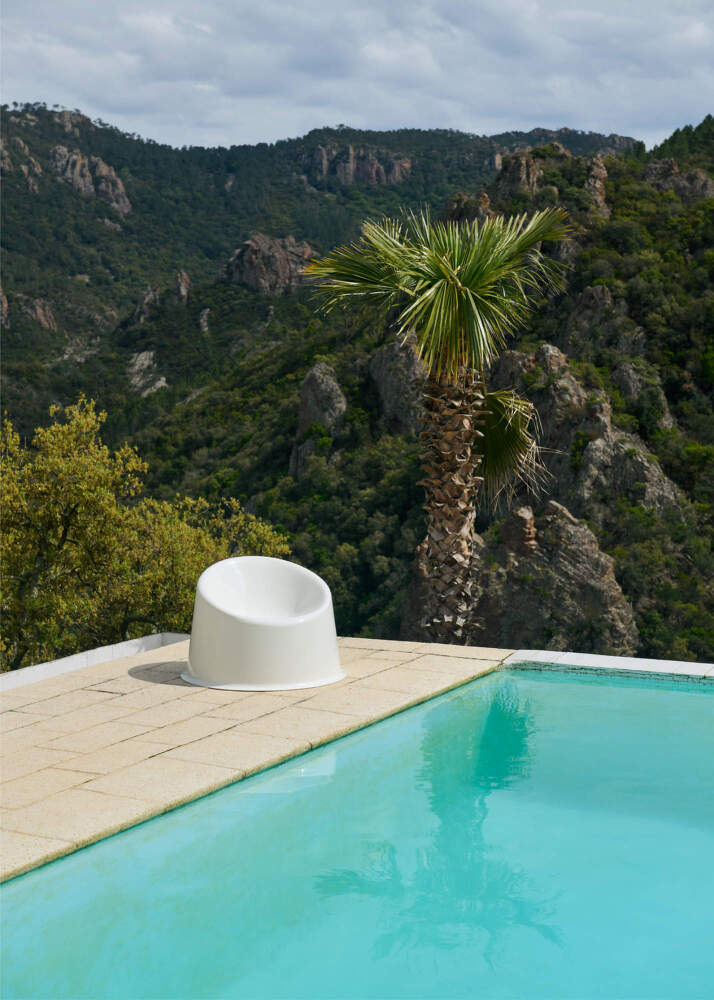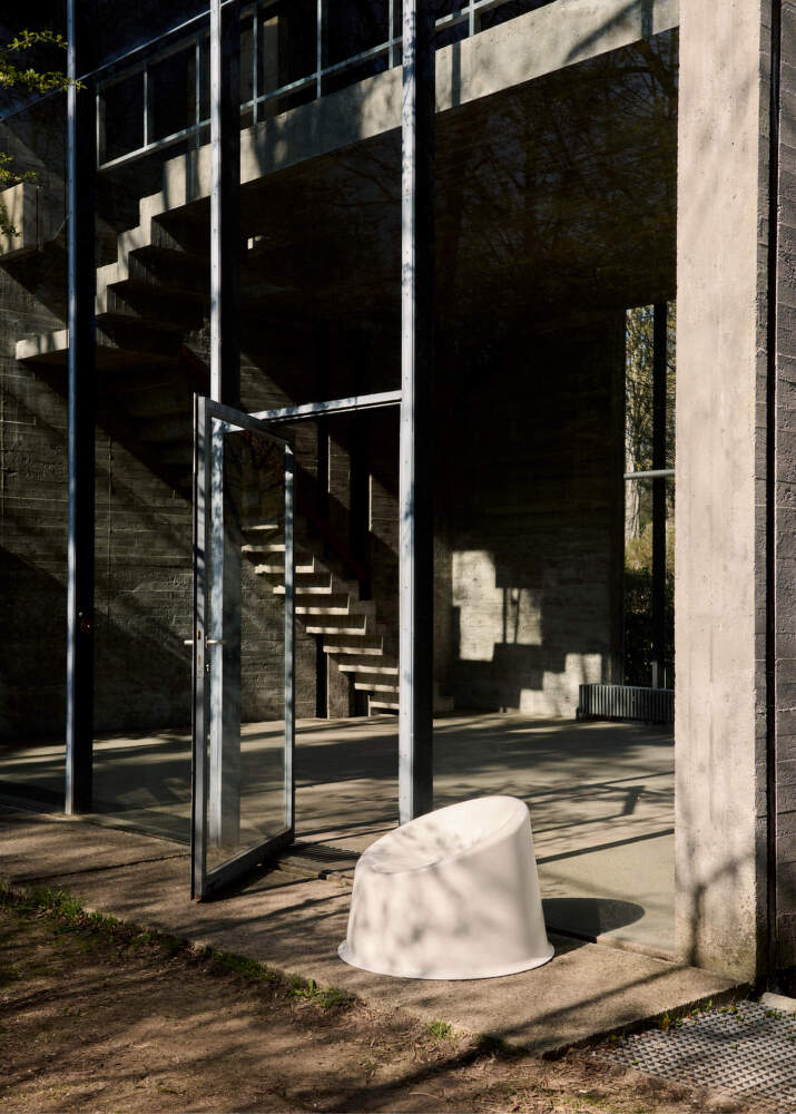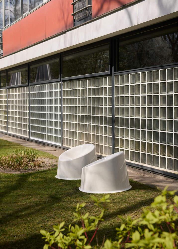 Odolné plastové křeslo Panto Pop od dánské značky Verpan, které navrhl designér Verner Panton. Barva: bílá.