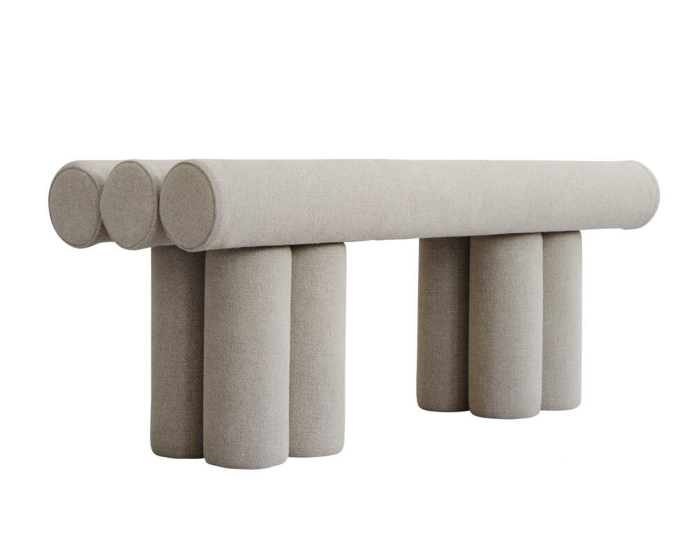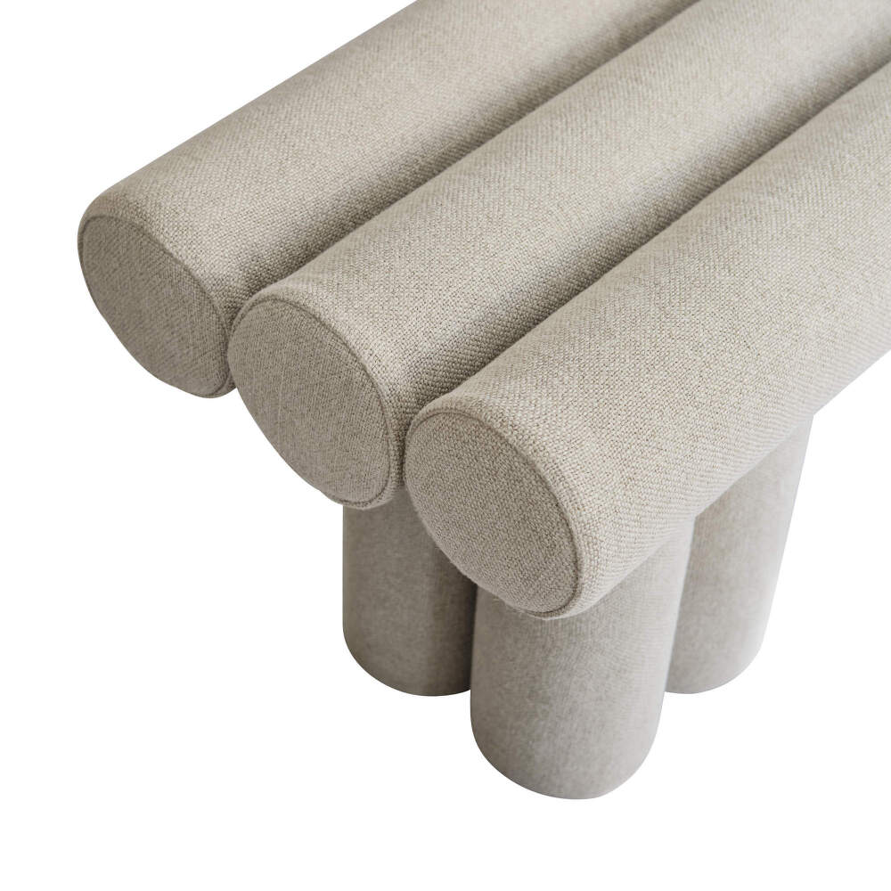 Konstrukce je tvořena čalouněnými válci, které zajišťují pohodlné sezení i stabilitu. Použitá látka Linen dodává povrchu příjemnou texturu a zároveň podporuje odolnost při každodenním používání.