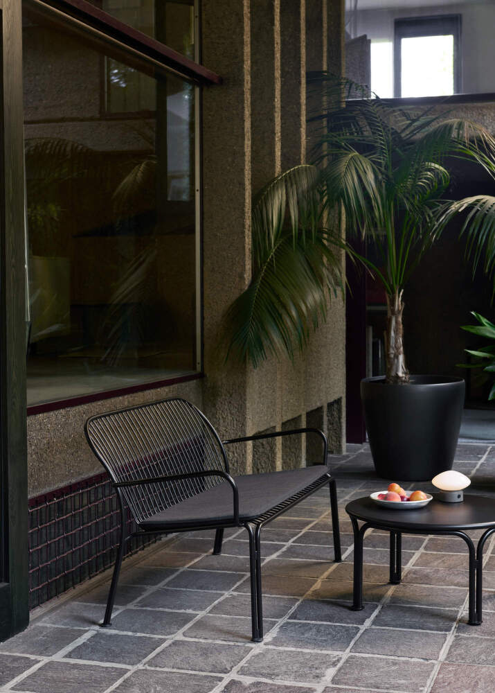 Zahradní lavička s područkami Thorvald SC110 od dánské značky &Tradition navržená studiem Space Copenhagen. Provedení: černá.