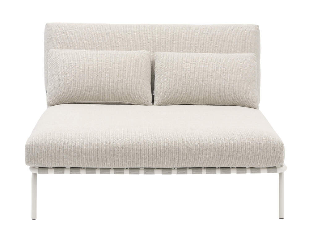 Hluboké, nakloněné opěradlo a měkké polštáře z rychleschnoucí pěny, potažené odolnou venkovní textilií, poskytují maximální pohodlí i při delším posezení. Díky dvěma volným polštářům navíc nabízí lehátko ještě větší variabilitu a oporu. Protiskluzová úprava drží polstrování bezpečně na místě, zatímco viditelné pásy dodávají lehátku charakteristický detail.
