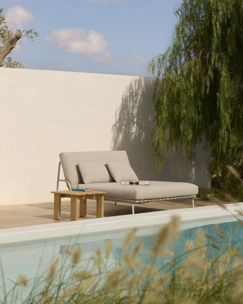Hluboké, nakloněné opěradlo a měkké polštáře z rychleschnoucí pěny, potažené odolnou venkovní textilií, poskytují maximální pohodlí i při delším posezení. Díky dvěma volným polštářům navíc nabízí lehátko ještě větší variabilitu a oporu. Protiskluzová úprava drží polstrování bezpečně na místě, zatímco viditelné pásy dodávají lehátku charakteristický detail.