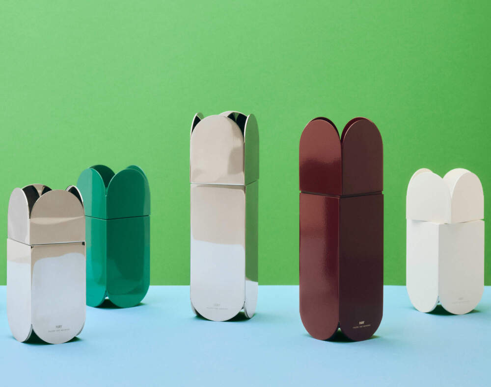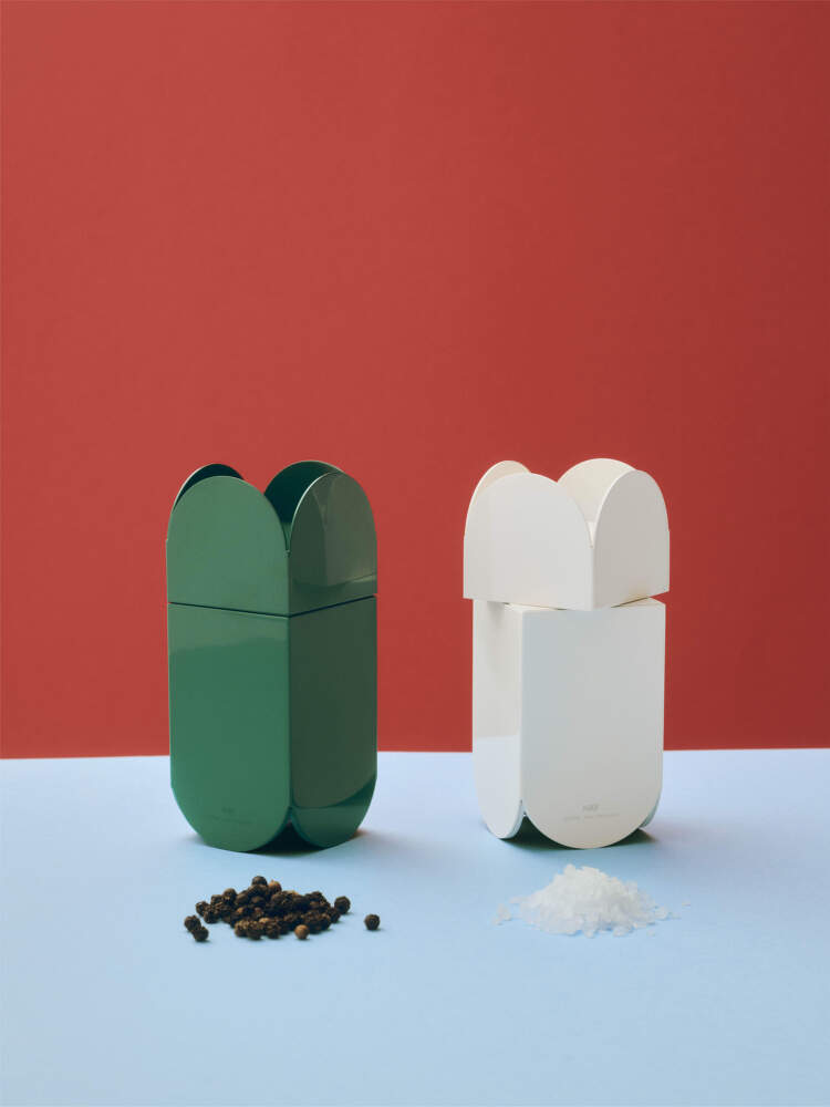Menší stylový mlýnek na sůl a pepř Arcs, který navhla belgická dvojice Muller Van Severen pro dánskou značku HAY. Barva: zelená.