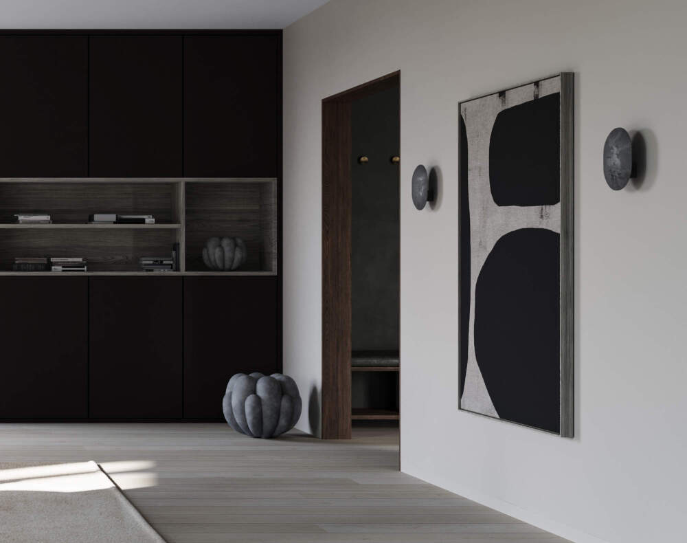 Stínítko je vyrobeno z kvalitního kovu s oxidovaným povrchem, které vytváří surový matný vzhled s přirozenými stopami a jemnými nerovnostmi, které jsou typickým znakem ručního zpracování. Lampa Clam se skvěle uplatní v obývacích pokojích, ložnicích, chodbách i hotelových interiérech, kde funguje jako ambientní světlo, jemný akcent nebo doplněk k centrálnímu osvětlení.