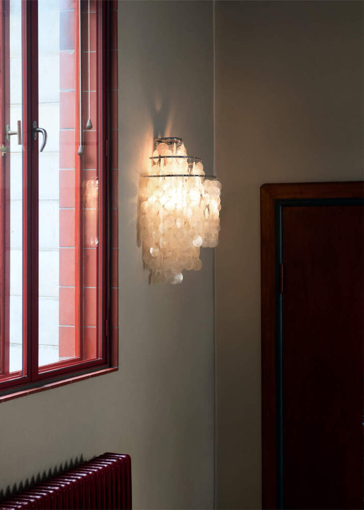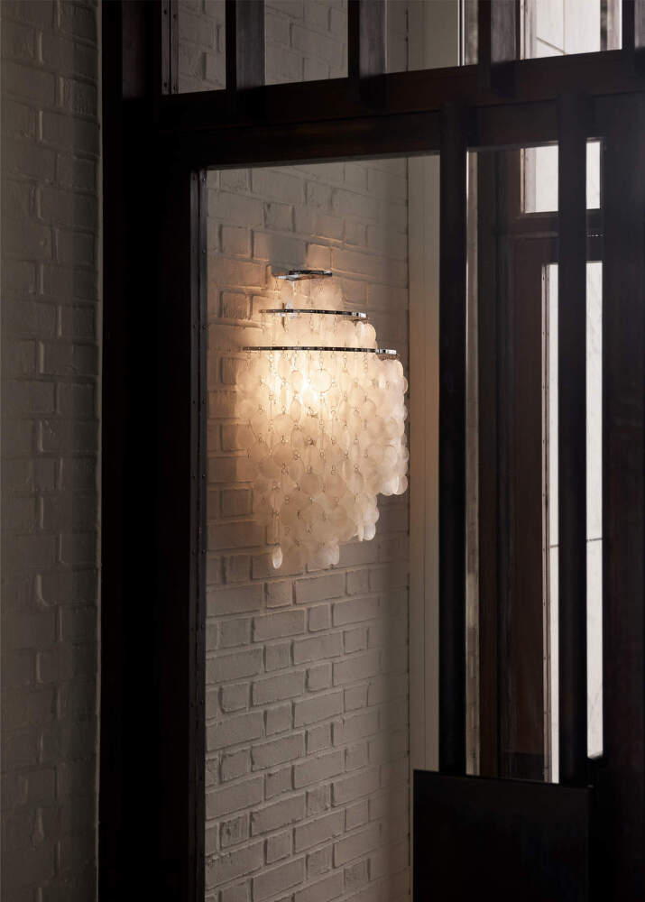Nástěnná lampa Fun patří k ikonickým návrhům Vernera Pantona z poloviny 60. let. Stejně jako ostatní varianty kolekce pracuje s pohybem, strukturou a světlem jako s formotvornými prvky. Na stěně působí jako lehký, téměř šperkový objekt, který prostoru dodává jemnou dynamiku.