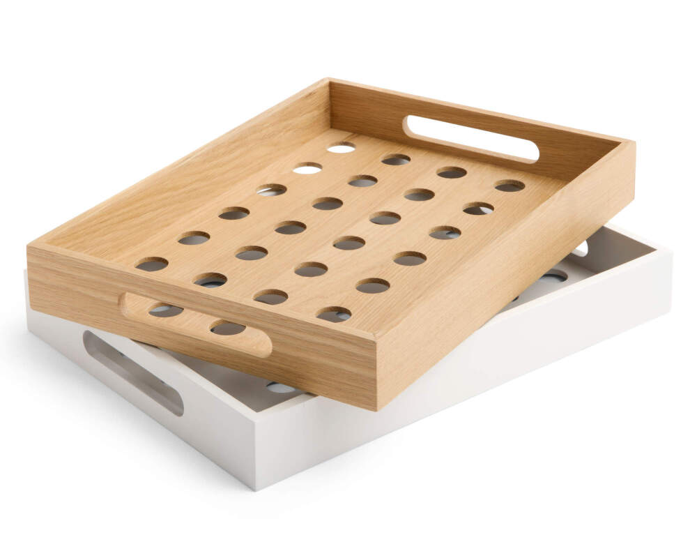 Podnos Terrazza se hodí pro servírování jídla a nápojů, přenášení drobností nebo jako organizér na stole či polici. Vyrábí se také v bambusové verzi.