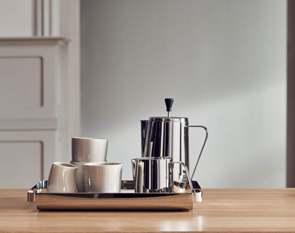 Elegantní podnos Unio vyniká především precizním zpracováním a oku lahodícími detaily. Je důmyslně vyrobený pouze z jednoho kusu oceli. Díky širšímu okraji a nízké hmotnosti se bude skvěle přenášet. Výborně se bude hodit pro servírování snídaně do postele nebo jej lze použít k dekorování konferenčních stolků.