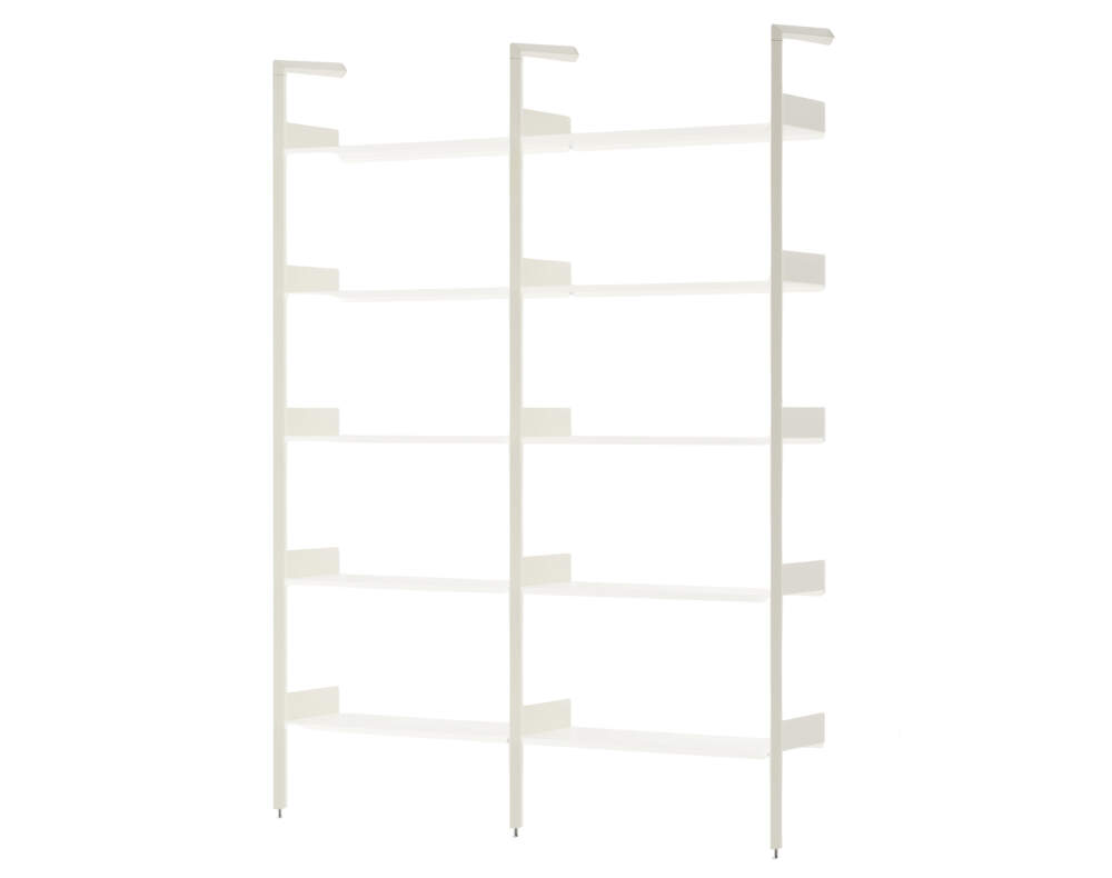 Rombe v konfiguraci A je čistě policová sestava, která nabízí vzdušné, vizuálně lehké úložné řešení pro knihy, dekorace nebo pracovní nástroje. Díky otevřené konstrukci a kombinaci hliníku a oceli působí subtilně, ale přesto stabilně. Skvěle funguje jako domácí knihovna nebo praktické pracovní zázemí v ateliéru či čtecím koutku.