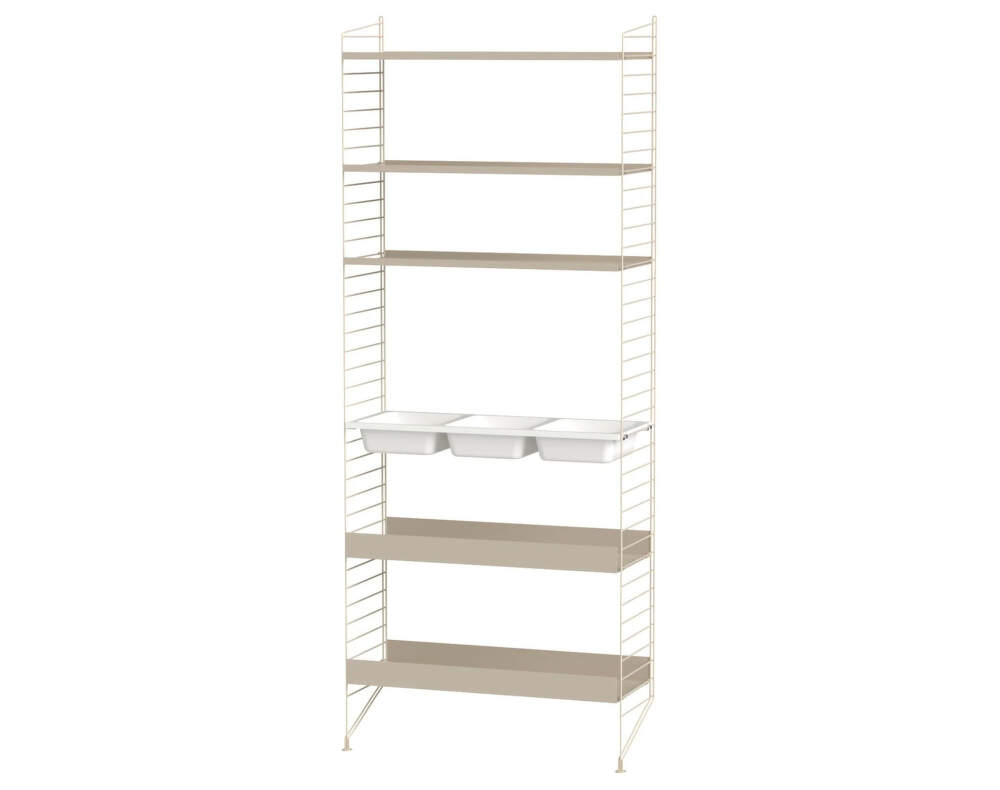 Hotová policová sestava Bathroom L v klasickém String designu je ideální volbou pro malé koupelny. Do praktických polic se vejdou veškeré kosmetické nezbytnosti a ručníky, které je potřeba mít po ruce. Police s přihrádkami poskytne bezpečné uložení drobností jako jsou gumičky, sponky nebo malé lahvičky.