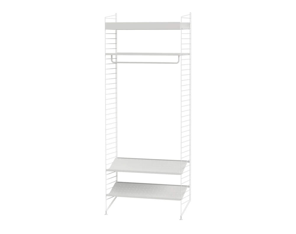 Hotová policová sestava Hallway L v klasickém String designu je ideální volbou pro středně velké chodby. O vaše bundy, kabáty i pokrývky hlavy se postarají police a tyč v horní části. Spodní police zase zajistí, že se na zemi nebudou povalovat žádné boty.