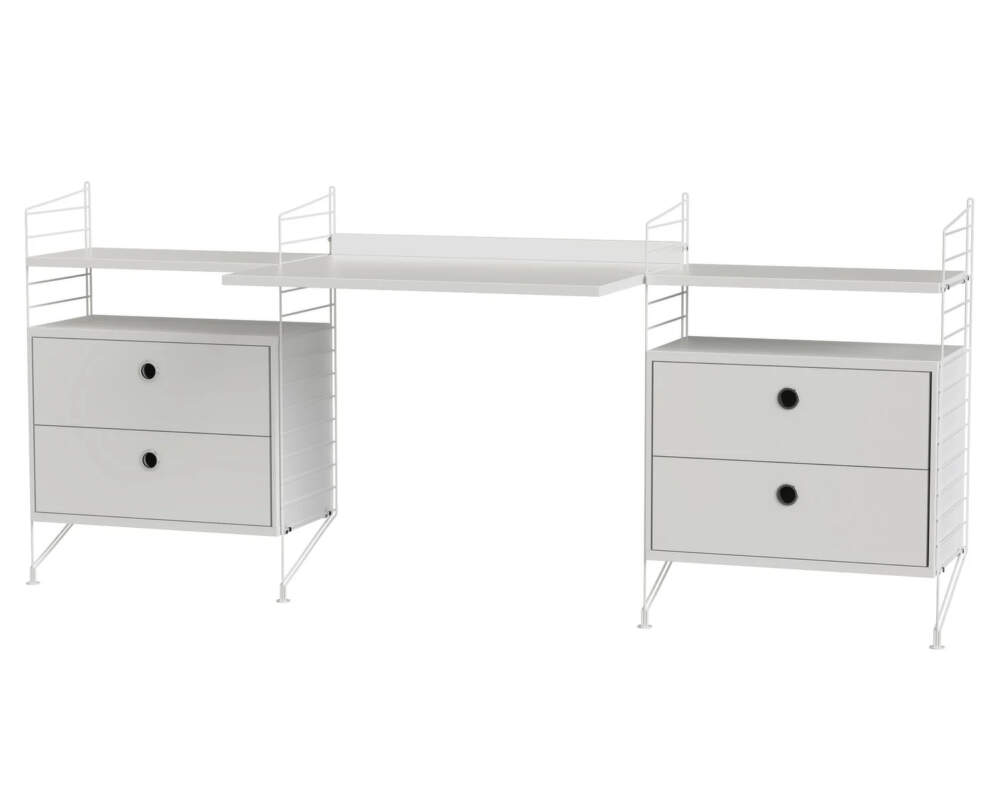 Ať už pracujete z kanceláře nebo domova, minimalistická sestava Workspace C od značky String nabízí stylové řešení, které pokryje všechny vaše potřeby. Tato kombinace je skvělou volbou zejména pro menší pracovny. Je elegantní, jednoduchá a nezabere příliš místa. Do praktické skříňky se šuplíky lze pohodlně uschovat všechny důležité dokumenty.