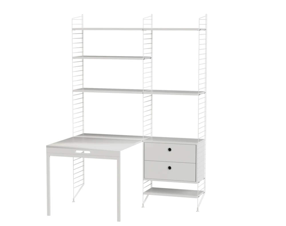 Ať už pracujete z kanceláře nebo domova, minimalistická sestava Workspace E od značky String nabízí stylové řešení, které pokryje všechny vaše potřeby. Tato kombinace je skvělou volbou zejména pro menší pracovny. Je elegantní, jednoduchá a nezabere příliš místa. Do praktické skříňky se šuplíky lze pohodlně uschovat všechny důležité dokumenty.