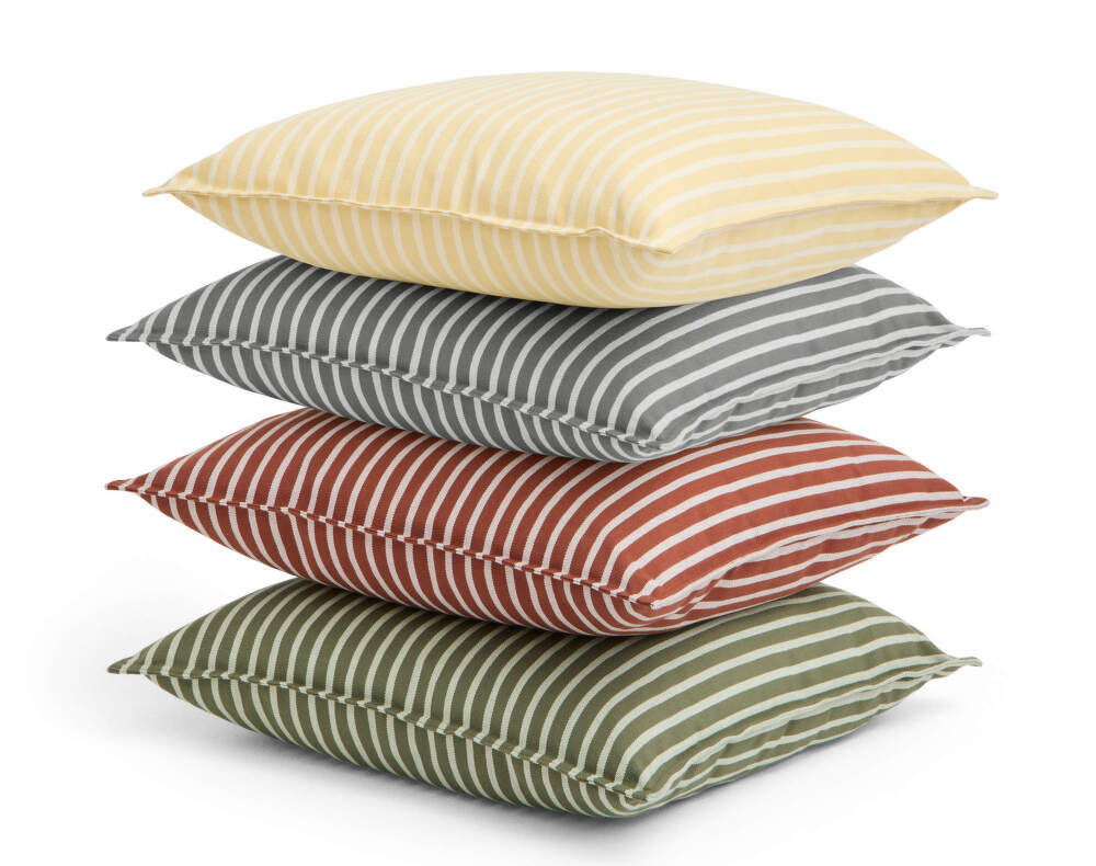 Barevný polštář Terrazza, který je vhodný pro venkovní použití, od dánské značky HAY. Barva: žluté proužky.