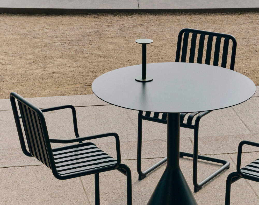 Minimalistická přenosná stolní lampa Host 300 od dánské značky HAY. Barva: antracitová.