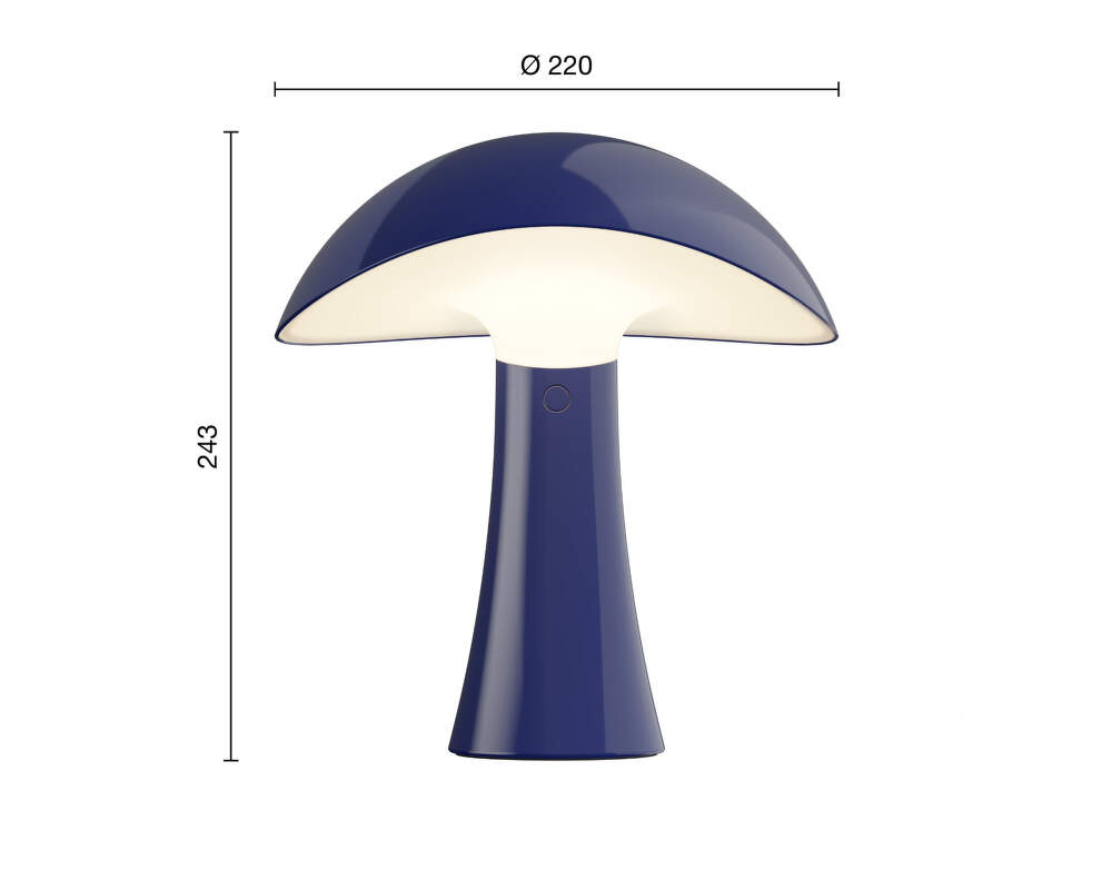 Lampa kombinuje měkké, rozptýlené světlo s odolnou konstrukcí z vstřikovaného polymeru. Je vybavena třístupňovým stmíváním (10 % / 33 % / 100 %), díky němuž lze snadno měnit intenzitu osvětlení podle nálady i situace. Dobíjecí lithium-iontová baterie poskytuje až 5 hodin provozu při plném jasu a dobíjí se pomocí kabelu USB-C. Během nabíjení jemně svítí kontrolka na základně.