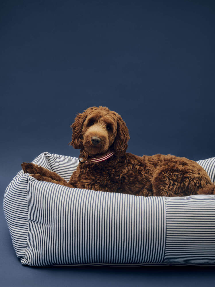 Pelíšek pro psy je součástí série HAY Dogs, na které se podílely Mette Hay a Barbara Maj Husted Verner. Pelech je vhodný pro drobná psí plemena. Provedení: Large, modré a bílé proužky.