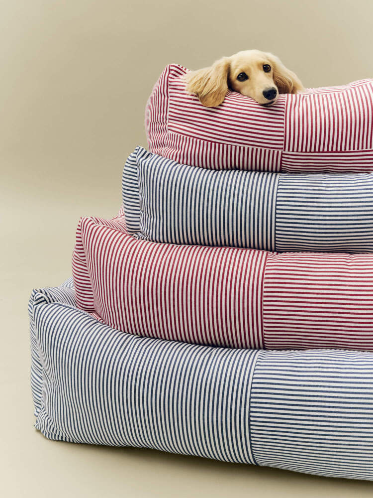 Pelíšek pro psy je součástí série HAY Dogs, na které se podílely Mette Hay a Barbara Maj Husted Verner. Pelech je vhodný pro drobná psí plemena. Provedení: Medium, červené a bílé proužky.