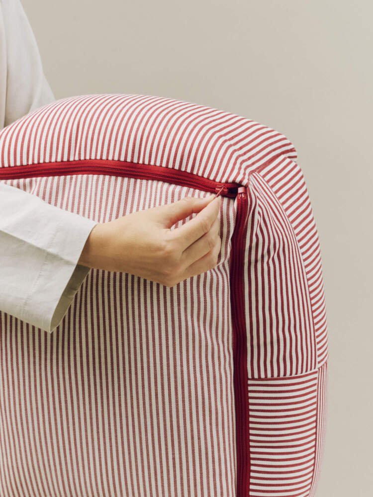 Pelíšek pro psy je součástí série HAY Dogs, na které se podílely Mette Hay a Barbara Maj Husted Verner. Pelech je vhodný pro drobná psí plemena. Provedení: XS, červené a bílé proužky.