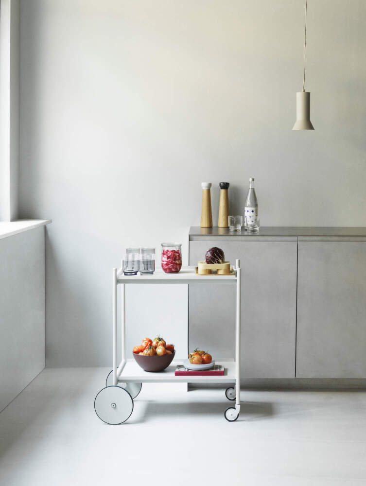 Elegantní servírovací stolek Rul, který pro dánskou značku Normann Copenhagen navrhnul Simon Legald. Barva: světle šedá.