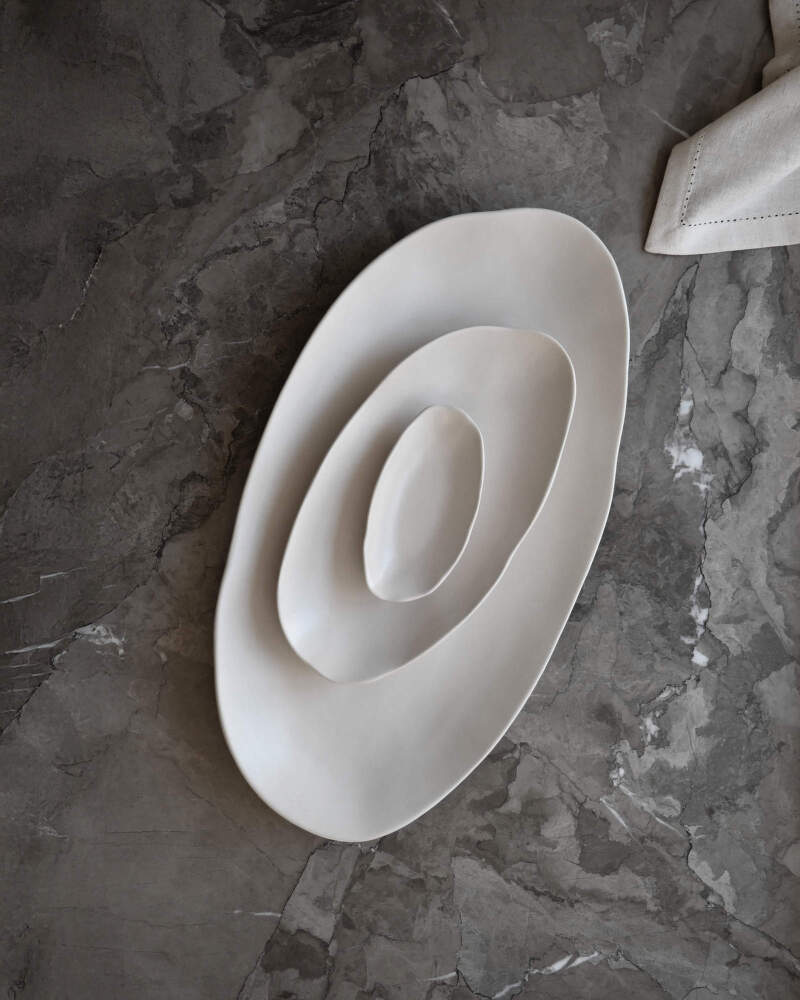 Servírovací talíř Native Oval Tray Medio vychází z estetiky kolekce Native, která spojuje jednoduchý design s důrazem na řemeslné zpracování a každodenní funkčnost. Tvar je inspirován principy japonského stolování, kde hrají důležitou roli vyvážené proporce, přirozenost a respekt k materiálu. Díky jemným detailům působí každý kus elegantně a zároveň si zachovává vlastní charakter.