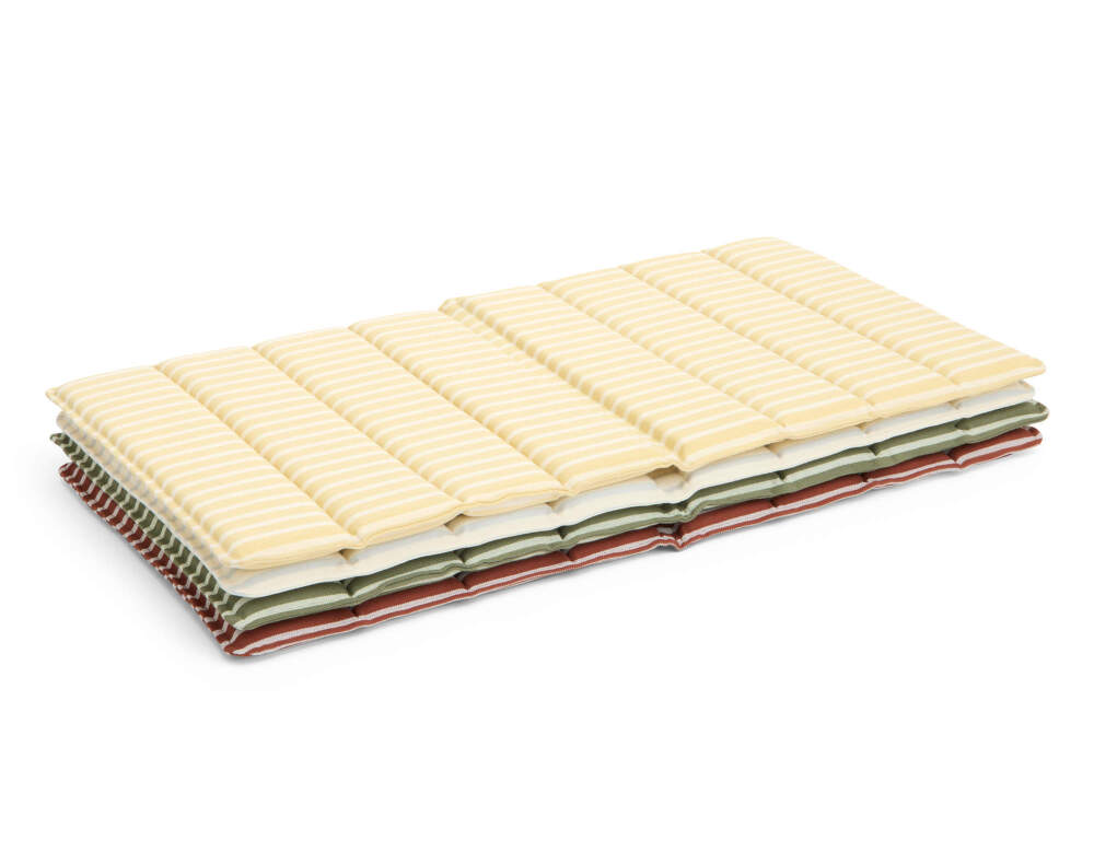 Praktický skládací textilní podsedák Terrazza, který je vhodný pro venkovní použití, od dánské značky HAY. Barva: žluté proužky.