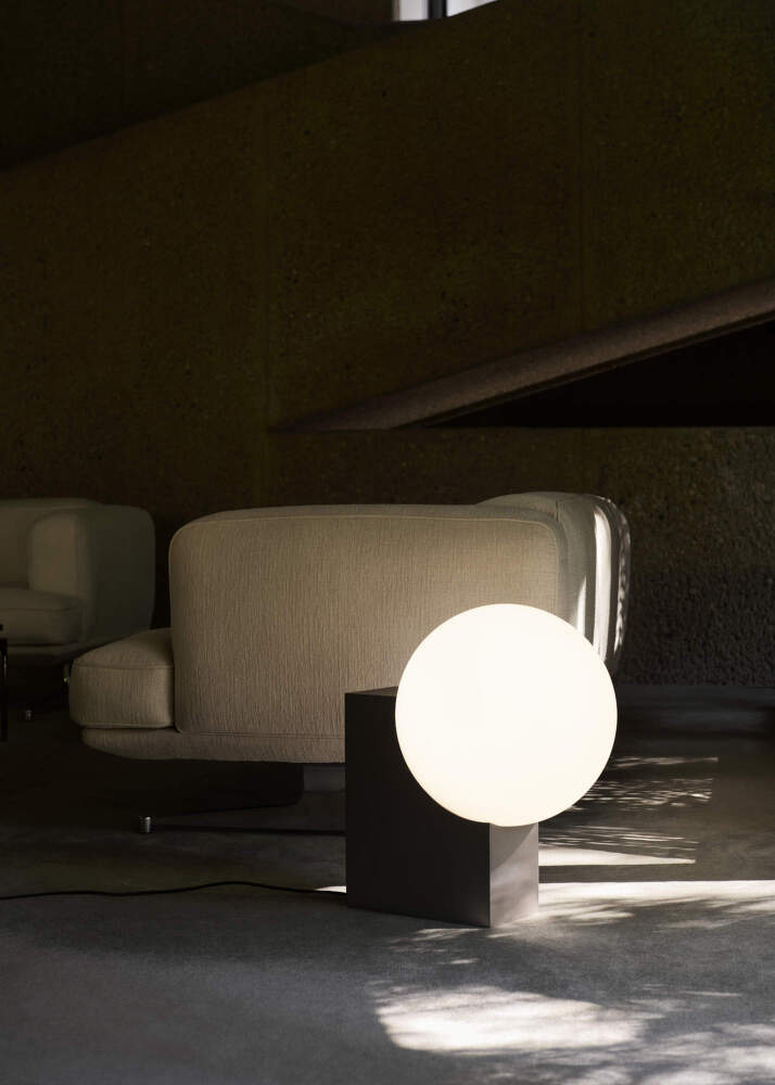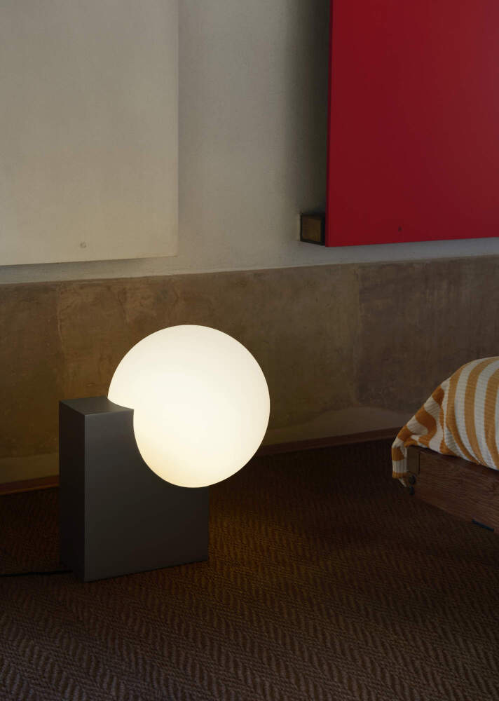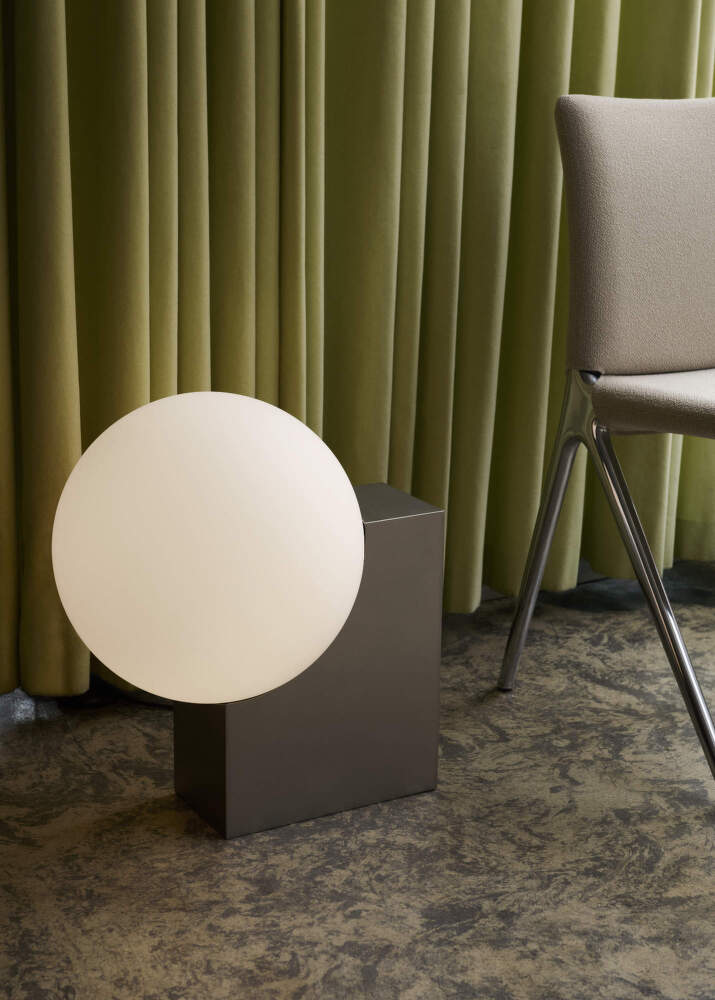 Opálové stínítko z ručně foukaného skla zajišťuje měkké, rovnoměrně rozptýlené světlo bez oslnění. Kovová konstrukce z broušené oceli dodává lampě stabilitu, jemný industriální nádech a zároveň podtrhuje její sochařský charakter.