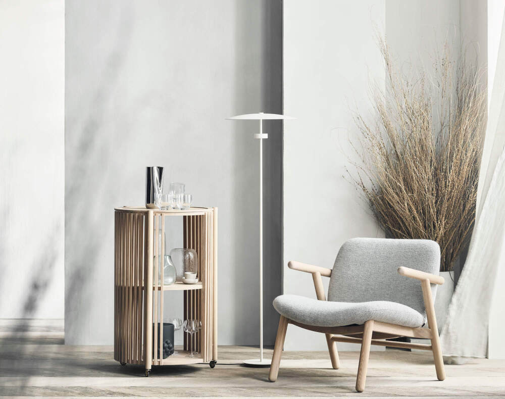 Stojací lampa Reflection se skvěle hodí vedle pohovky, křesla nebo čtecího koutku, kde nabízí přirozené doplňkové osvětlení. Uplatní se také v ložnicích, pracovních či hotelových prostorech, kde dodává interiéru klidný a vyvážený světelný akcent.