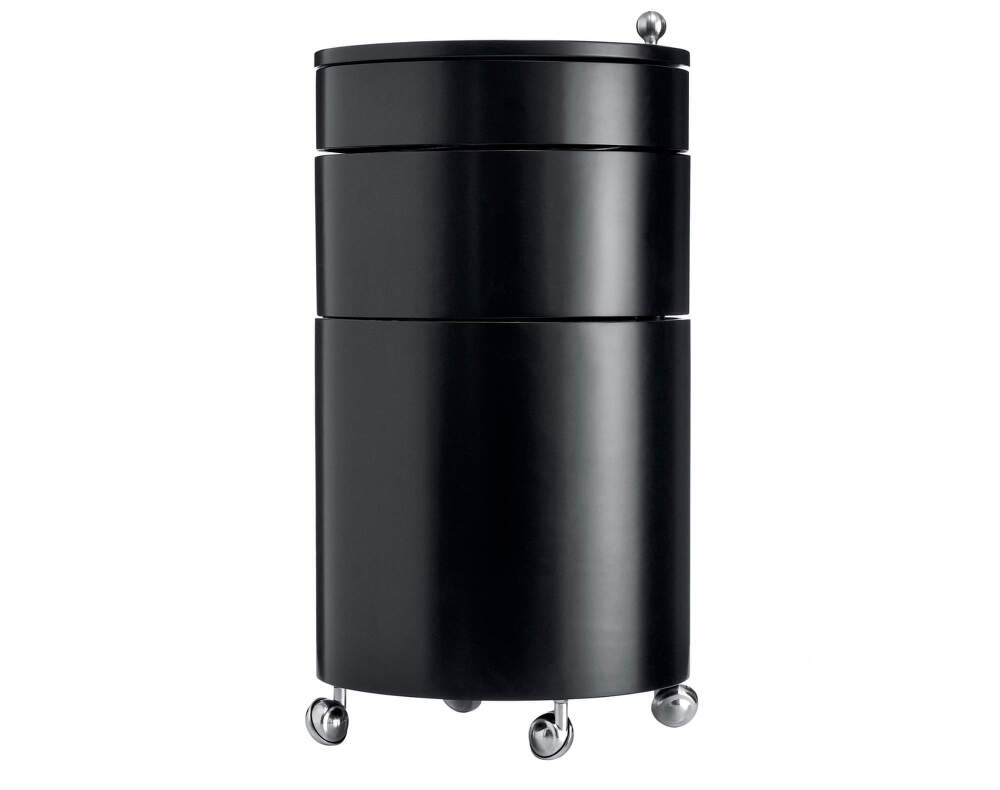 Barboy není jen stolek, je to také mobilní úložná skříňka na kolečkách. Tři otočné válcovité přihrádky nabízejí dostatek prostoru pro uložení drobností, dokumentů, lahví či osobních předmětů. Díky pojízdné základně jej lze snadno přesouvat podle aktuální potřeby, což z něj činí flexibilního společníka pro každodenní život.