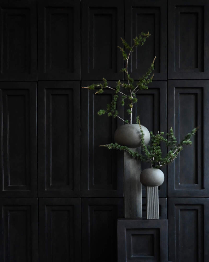Váza Empire Mini pracuje s výraznou vertikální siluetou a architektonickým výrazem v kompaktnějším měřítku. Její tvar připomíná členěné fasády budov a působí štíhle a strukturovaně. Plastický, jemně zvlněný povrch vytváří hru světla a stínu, díky které se vzhled vázy během dne přirozeně proměňuje.