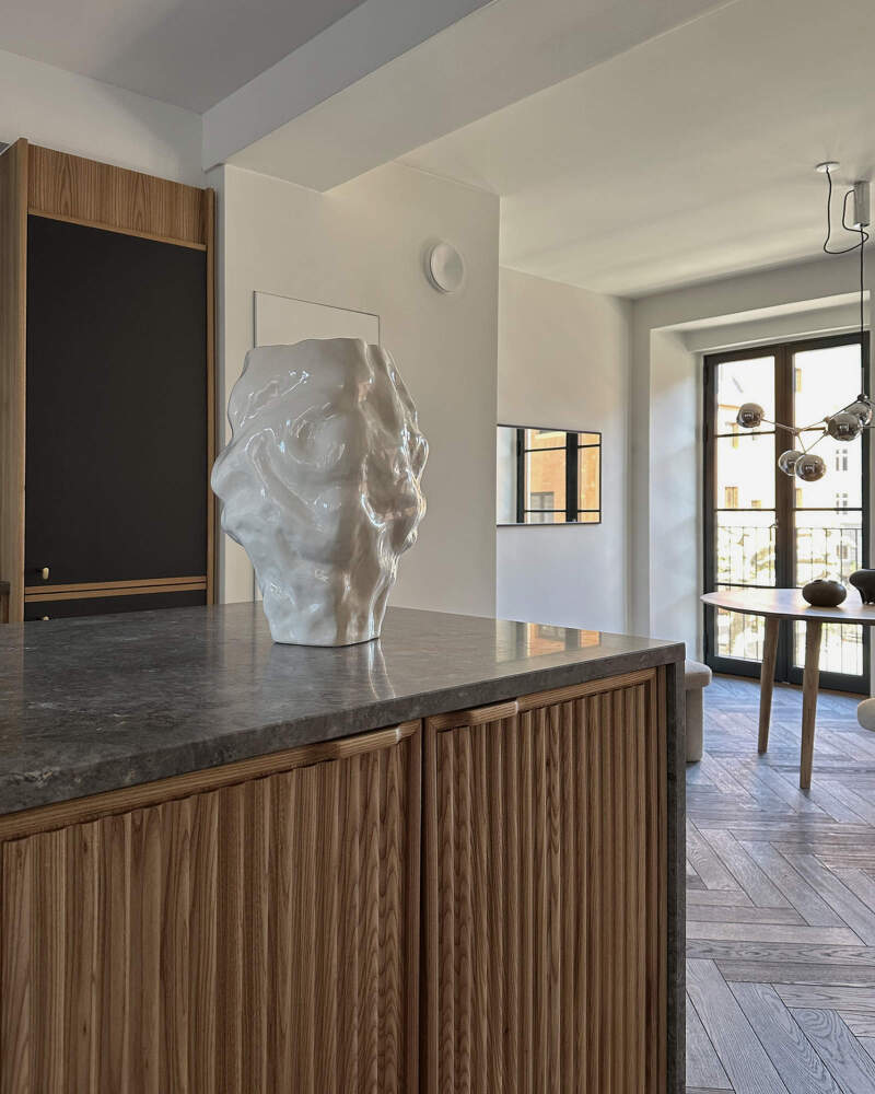 Váza Karachi Big představuje největší variantu z kolekce, která zkoumá souhru tvaru, světla a materiálu. Je vyrobena z ručně foukaného skla s jemně nepravidelným povrchem, který láme světlo a rozptyluje ho do měkkých odlesků.