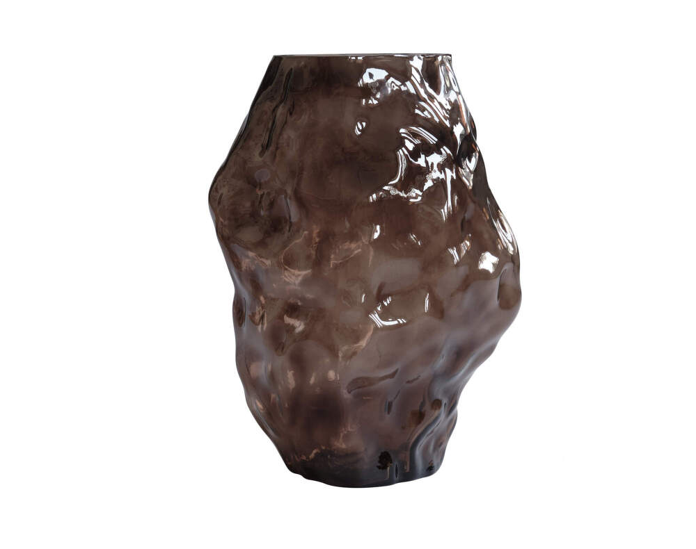 Velká skleněná váza Karachi Big, kterou pro dánskou značku 101 Copenhagen navrhli Kristian Sofus Hansen a Tommy Hyldahl. Provedení: tmavě hnědá.
