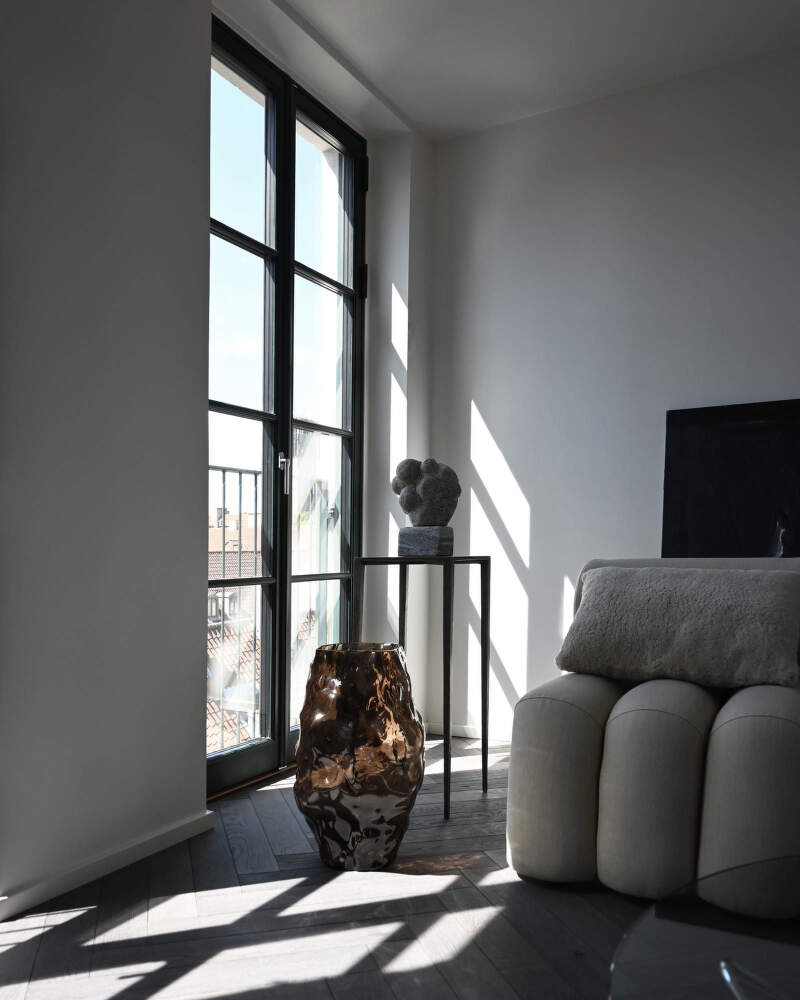 Váza Karachi Big představuje největší variantu z kolekce, která zkoumá souhru tvaru, světla a materiálu. Je vyrobena z ručně foukaného skla s jemně nepravidelným povrchem, který láme světlo a rozptyluje ho do měkkých odlesků.