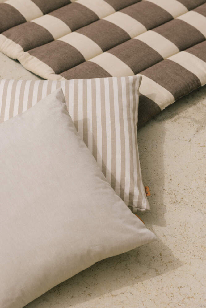 Odolný venkovní polštář Strand od dánské značky Ferm Living. Barva: písková/krémová.