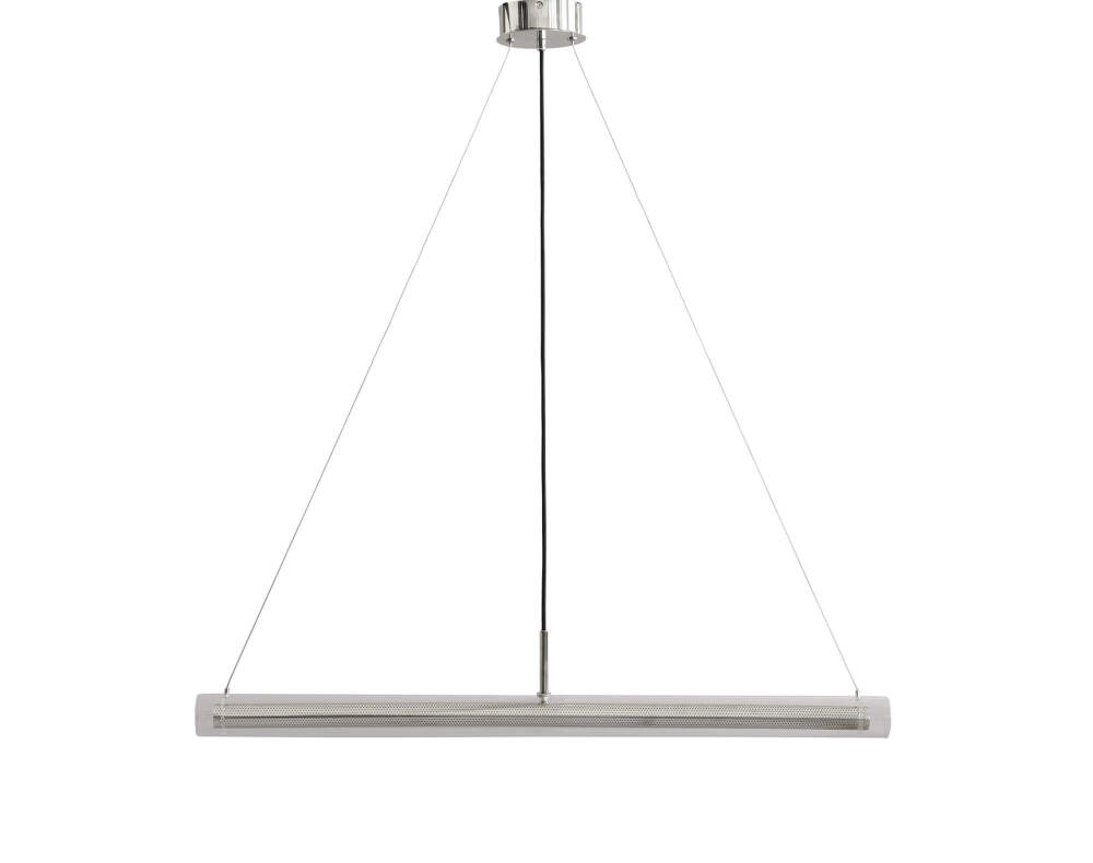 Rafinovaná závěsná lampa Frame, kterou pro dánskou značku 101 Copenhagen navrhli Kristian Sofus Hanse a Tommy Hyldahl. Provedení: chromová.
