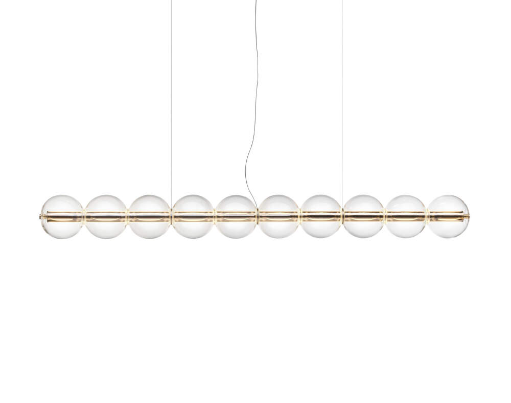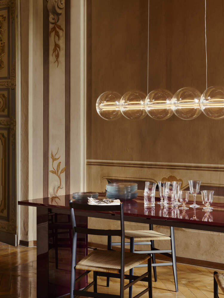 Závěsné svítidlo Luce Sferica zaujme kombinací přesného technického zpracování a jemného skleněného detailu. Hliníkové tělo je obklopeno řadou ručně foukaných skleněných koulí, které rozptylují světlo do prostoru a dodávají svítidlu lehkost i charakter.