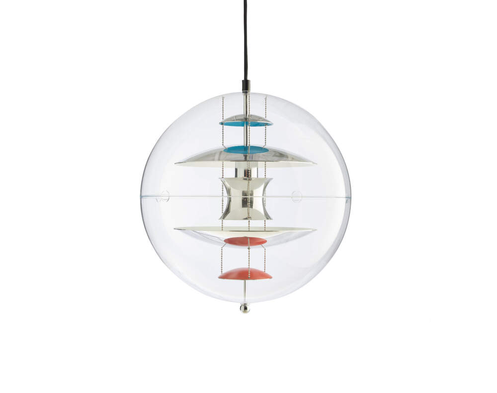 Závěsné svítidlo VP Globe patří k nejikoničtějším návrhům Vernera Pantona z let 1969–1970. Transparentní kulová forma odráží jeho fascinaci novými materiály i přesvědčení, že světelný zdroj nemá být přímo viditelný. Výsledkem je svítidlo, které působí futuristicky a zároveň vytváří mimořádně příjemné ambientní světlo.