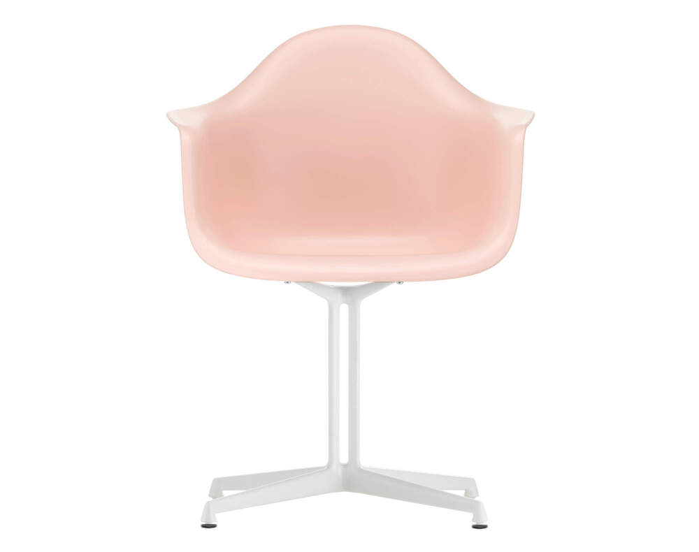 Eames DAL (Dining Height Armchair La Fonda Base) je ikonická designová židle od značky Vitra, která má plastový sedák s opěrkami a základnu La Fonda. Provedení: bílá podnož, světle růžový sedák.