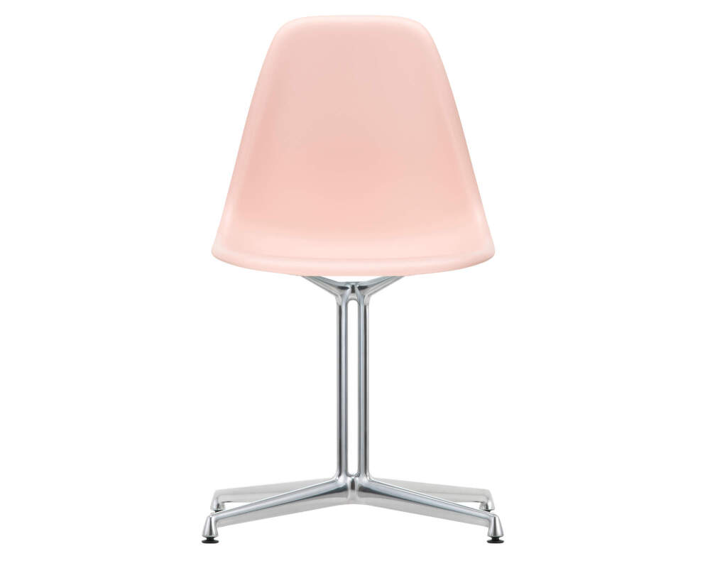 Eames DSL (Dining Height Side Chair La Fonda Base) je ikonická designová židle od značky Vitra, která má plastový sedák bez opěrek a základnu La Fonda. Provedení: podnož z leštěného hliníku, světle růžový sedák.